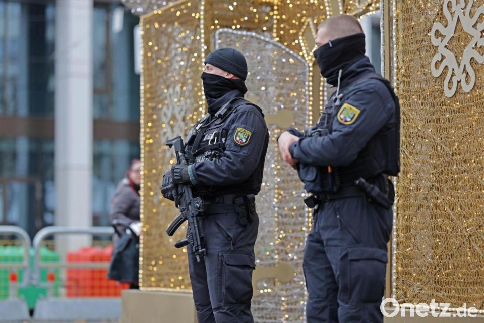 Brauchtum unter Polizeischutz: Polizisten sichern die Eröffnung vom Magdeburger Weihnachtsmarkt.