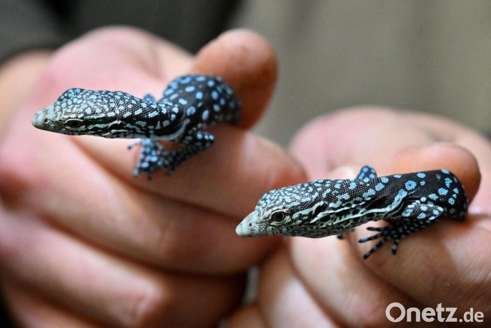 In der Jugend schon blau: Junge, Blaue Warane im Zoo im tschechischen Pilsen.