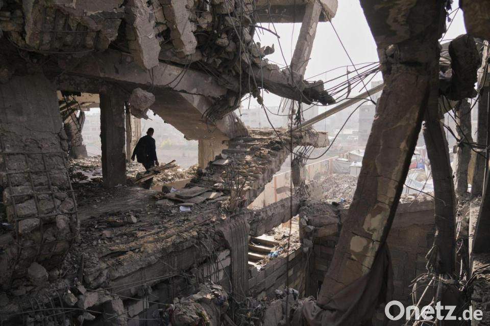 Apokalyptisch: Palästinenser inspizieren einen Tag nach einem israelischen Angriff auf ein Gebäude in Gaza die Ruinen.