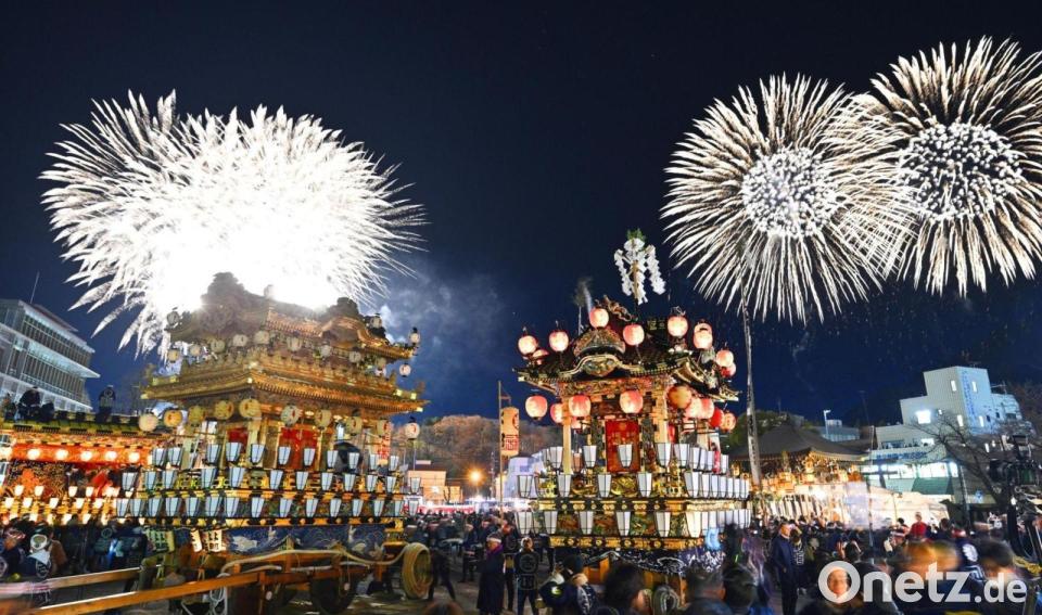Feuerwerkskörper explodieren beim Chichibu-Nachtfest in der Präfektur Saitama im Osten Japans.