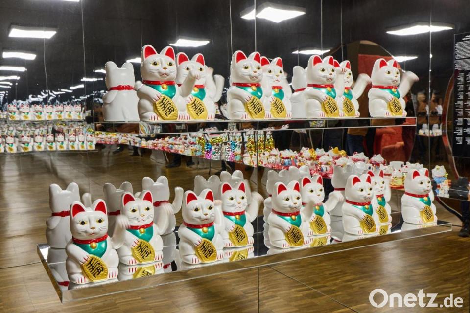 Miau wir sind Kultur! Winkekatzen stehen in der Sonderausstellung "Katzen!" im Hamburger Museum MARKK.