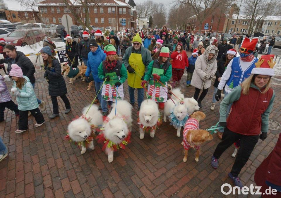 Hunde und ihre Besitzer ziehen während der jährlichen Reindog Parade durch die Innenstadt.