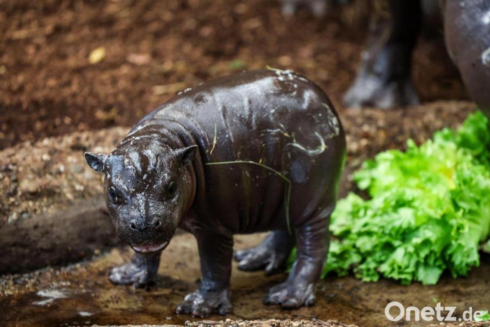 Nachwuchs im Duisburger Zoo: Zwergflusspferd Panya zeigt sich erstmals den Besuchern.