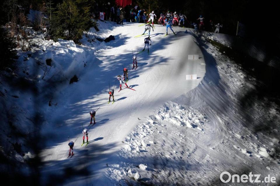 Immer schön in der Reihe fahren: Athleten sind beim Weltcup der Nordischen Kombination in Ramsau auf der Strecke unterwegs .