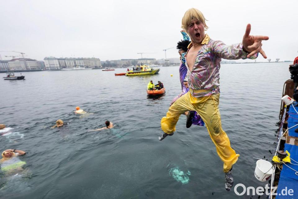 Ab ins kühle Nass - Teilnehmer des 87. jährlichen Weihnachtsschwimmens „Coupe de Noel“ springen in den Genfer See. Mehr als 4200 Männer und Frauen schwammen die 100 Meter beim traditionellen Weihnachtsschwimmen in Genf bei einer Wassertemperatur von 8,8 Grad Celsius.