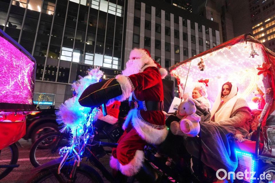 Santa on Tour: Weihnachtsmann radelt Fahrgäste durch New Yorks Sixth Avenue