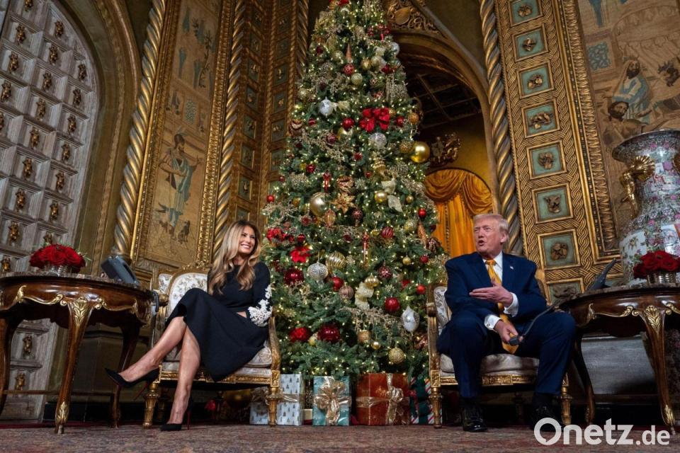 US-Präsident Donald Trump spricht in Begleitung von First Lady Melania Trump bei einem Telefonat.