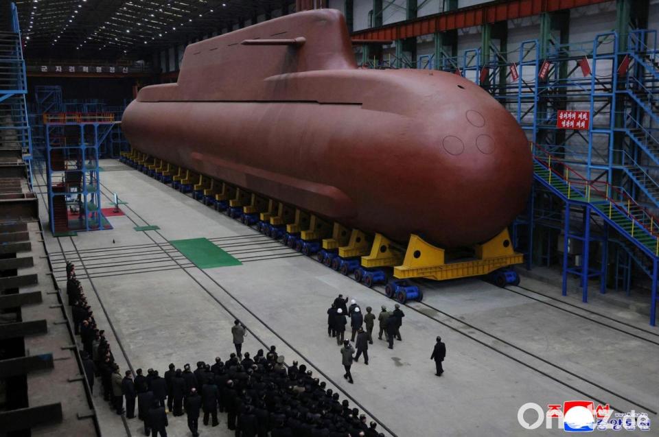 Nordkoreas Machthaber Kim Jong Un besichtigt U-Boot-Werft.