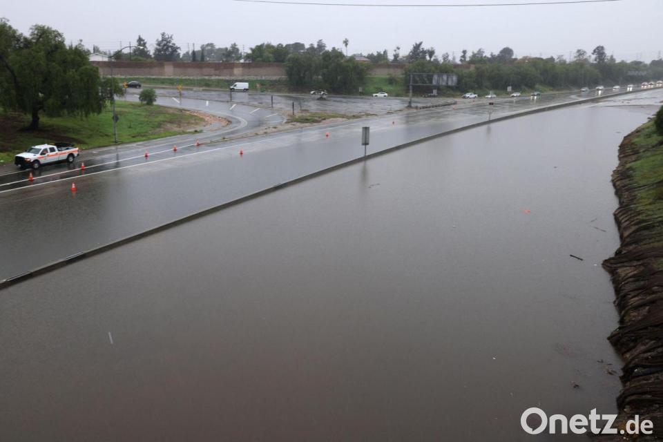 Eine Autobahn in Südkalifornien ist überschwemmt.