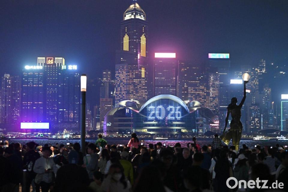 Hongkong: Besucher warten am Victoria-Hafen in Tsim Sha Tsui auf den Silvester-Countdown