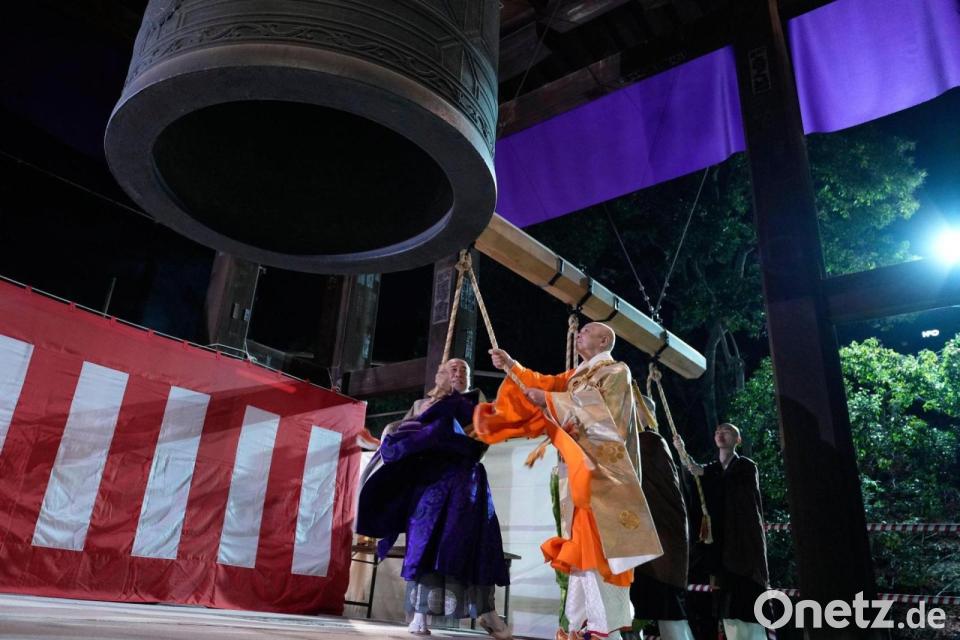 Tokio: Traditionelles Glockenschlagen der Mönche im Zojoji-Tempel zu Silvester