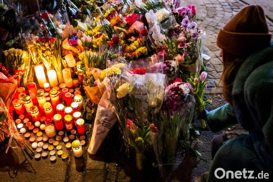 Eine Frau legt Blumen in der Nähe des Ortes nieder, an dem während der Neujahrsfeierlichkeiten in der Bar und Lounge „Le Constellation“ in Crans-Montana ein Brand ausgebrochen war, der Todesopfer und Verletzte forderte.