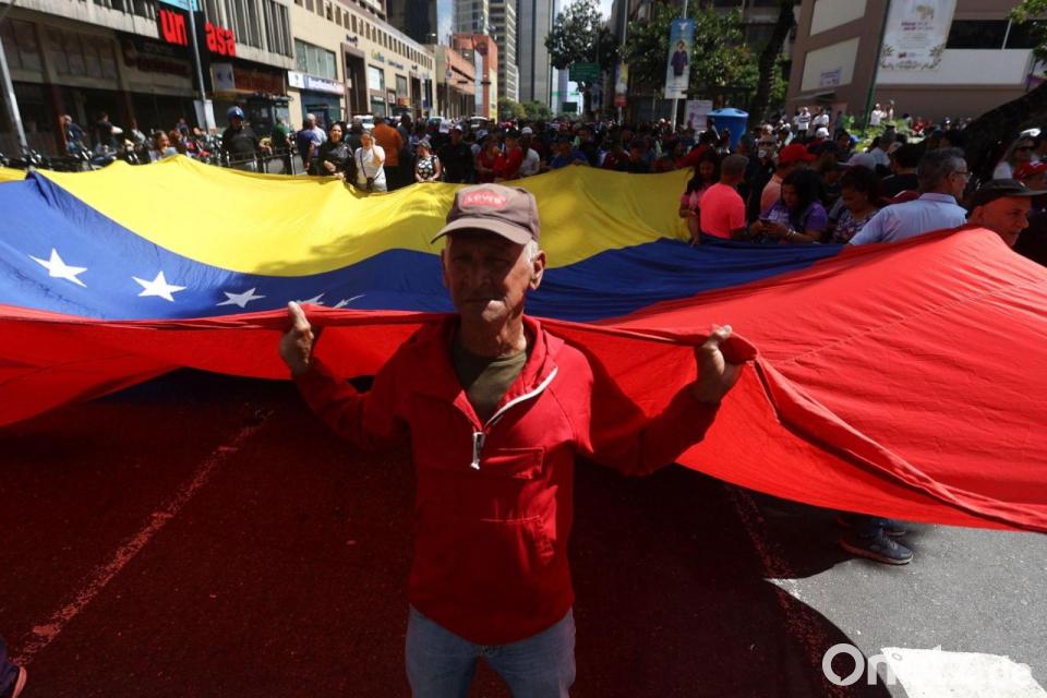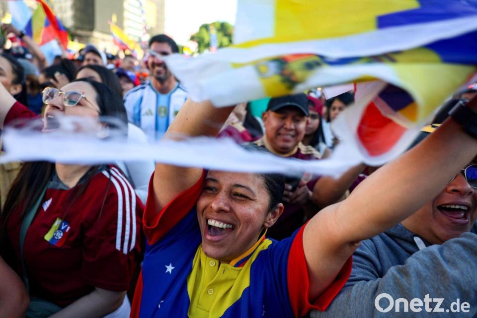 Anhänger des venezolanischen Staatschefs Maduro versammeln sich in der Stadtmitte und protestieren, nachdem US-Präsident Trump bekannt gegeben hat, dass der venezolanische Präsident gefangen genommen und aus dem Land ausgeflogen wurde.