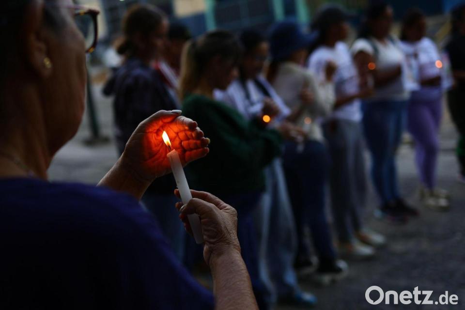 Eine Frau hält eine Kerze bei einer Demonstration für die Freilassung von politischen Gefangenen in der Nähe des Gefängnisses El Helicoide in Caracas.