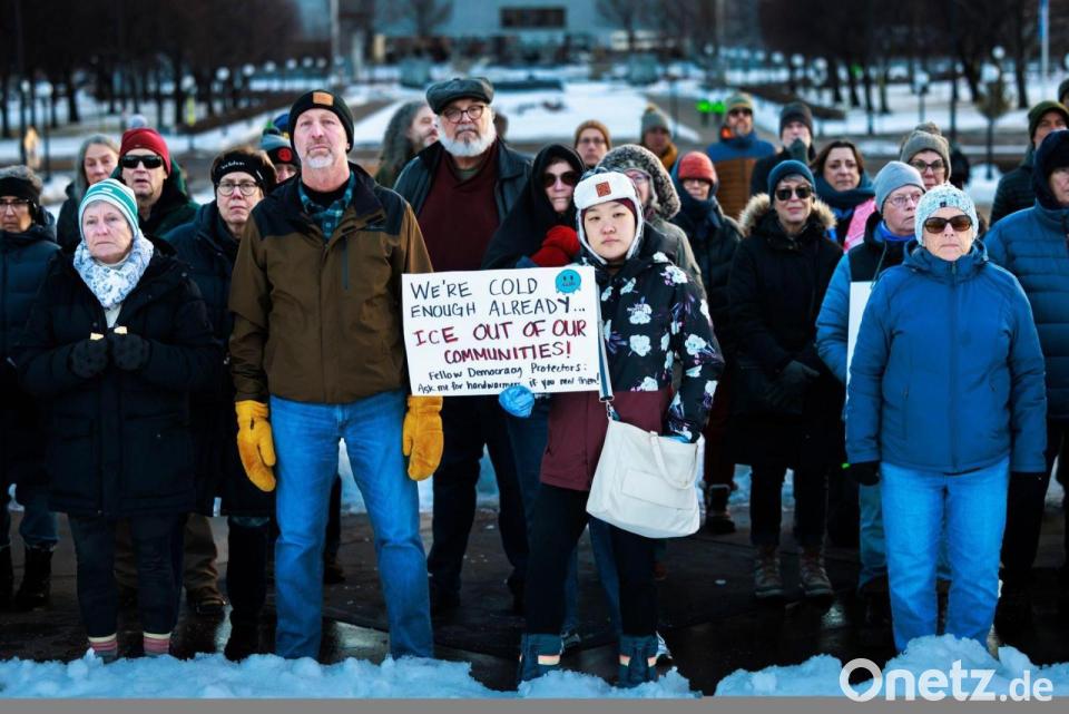 Protest gegen Einwanderungsbehörden: Demonstrierende mit erhobenen Händen auf einer Straße in Minneapolis
