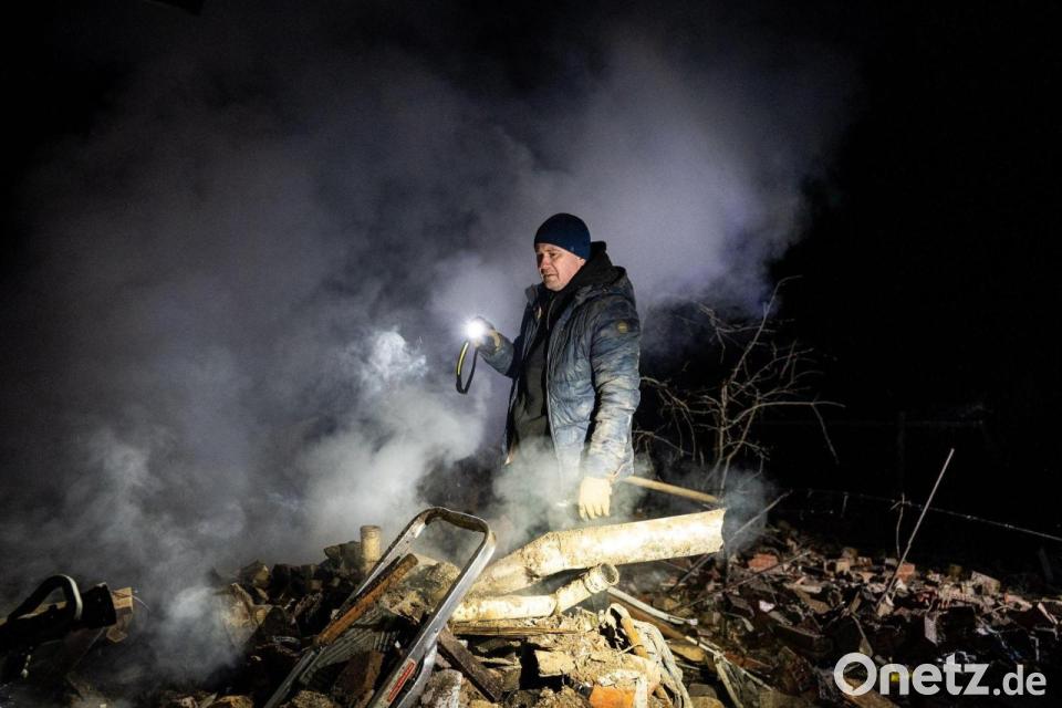 Rettungskräfte arbeiten am Ort eines russischen Luftangriffs auf ein Wohngebiet.