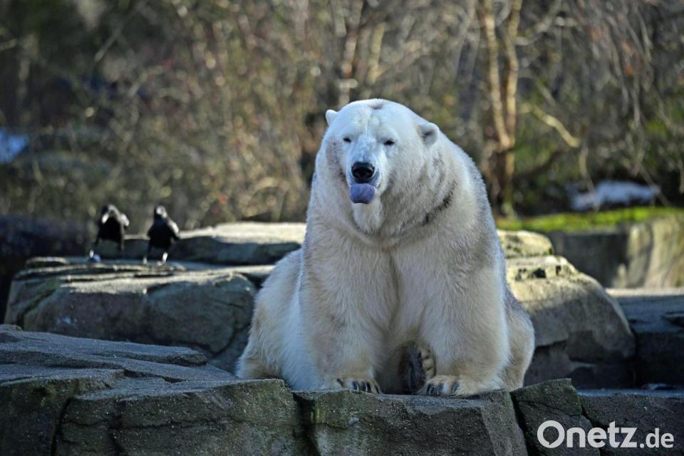 Ein Eisbär sitzt auf einem Felsen. Zum Jahreswechsel hat das Zoo-Team in Hannover den Tierbestand gezählt, gemessen und gewogen.