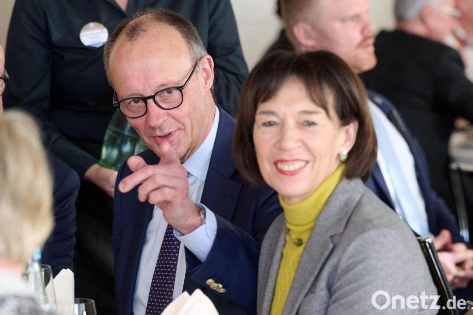 Bundeskanzler Friedrich Merz (CDU) sitzt neben seiner Gattin Charlotte Merz in Dortmund. Merz bekam anschliessend den „Großen Stutenkerl“ des Bäckerinnungsverband West verliehen.
