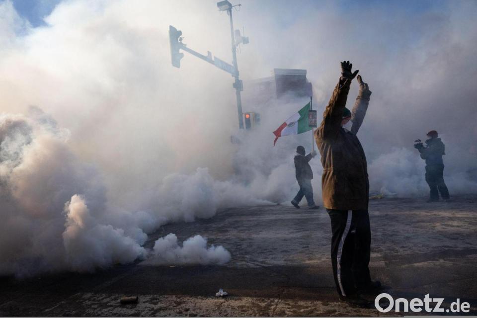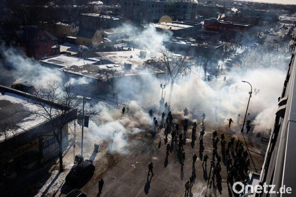 Eine Person ist in Minneapolis von Tränengaswolken umhüllt.