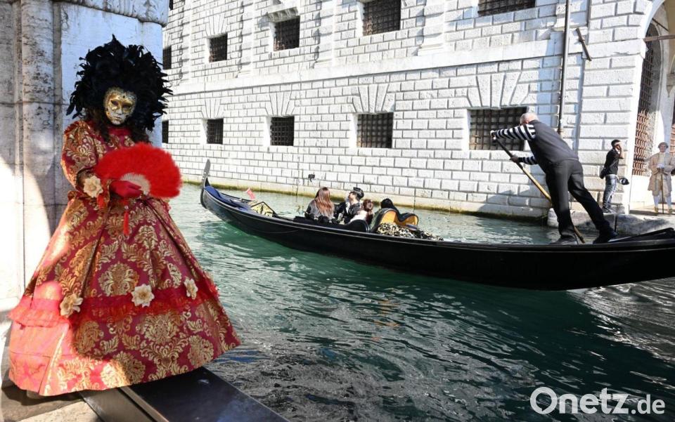 Bei der Wasserparade im Karneval in Venedig wird mit viel Konfetti gefeiert.