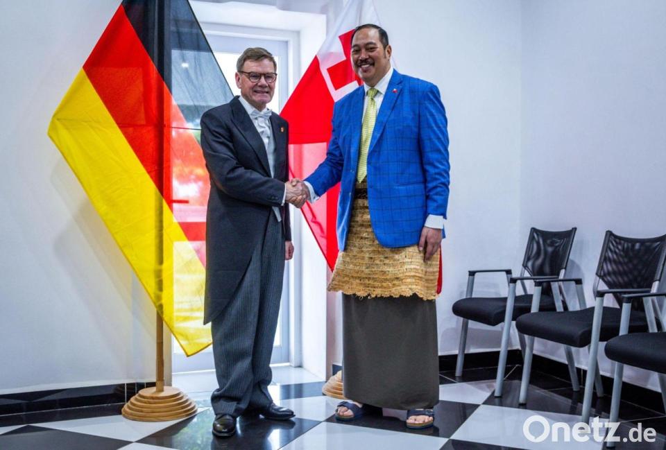 Außenminister Johann Wadephul und Außenminister Tupouto'a Ulukalala geben sich die Hand.