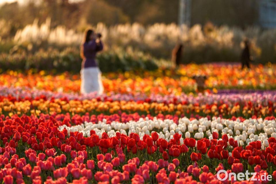 Tulpen blühen in einem Park in der Stadt Kunming in der südwestchinesischen Provinz Yunnan.