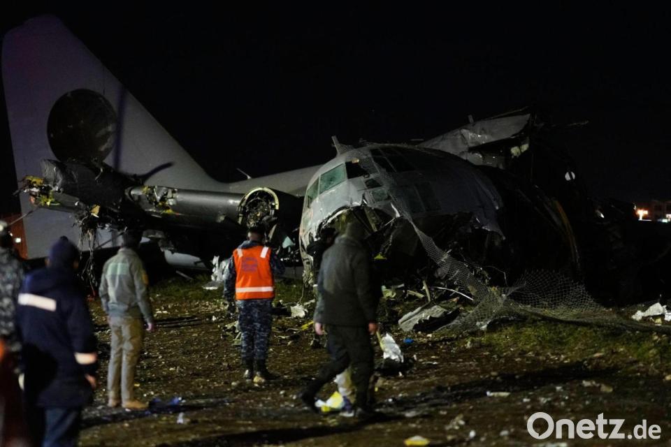 Menschen laufen an der Stelle vorbei, an der ein Flugzeug auf einer Autobahn in El Alto, Bolivien, abgestürzt ist.
