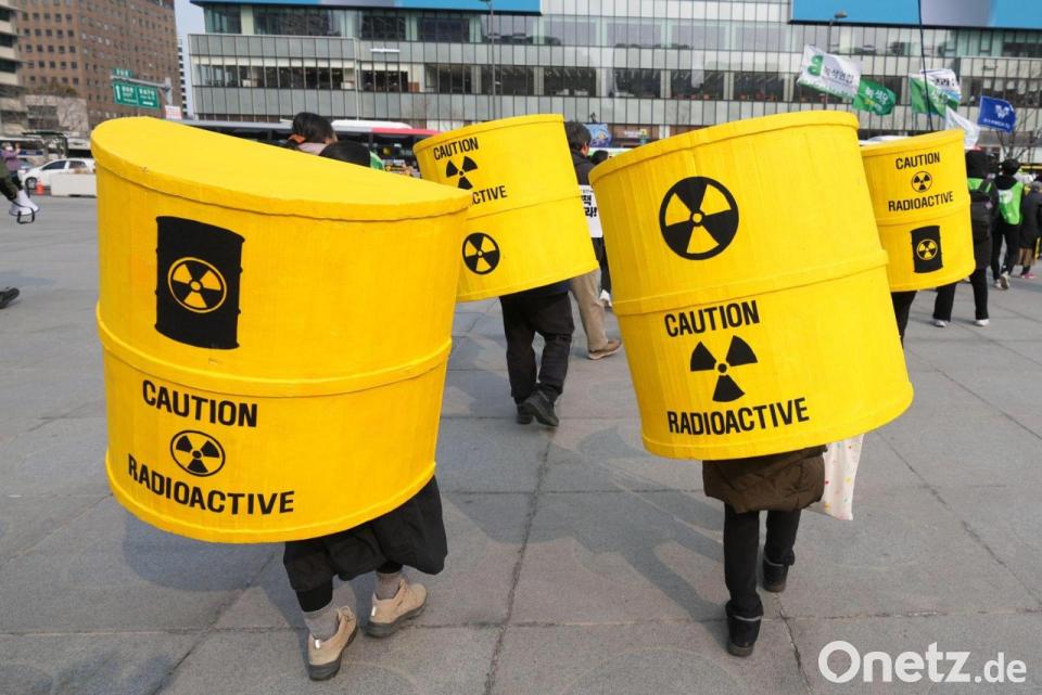 Menschen demonstrieren zum 15. Jahrestag der Atomkatastrophe von Fukushima im südkoreanischen Seoul gegen Atomkraft.