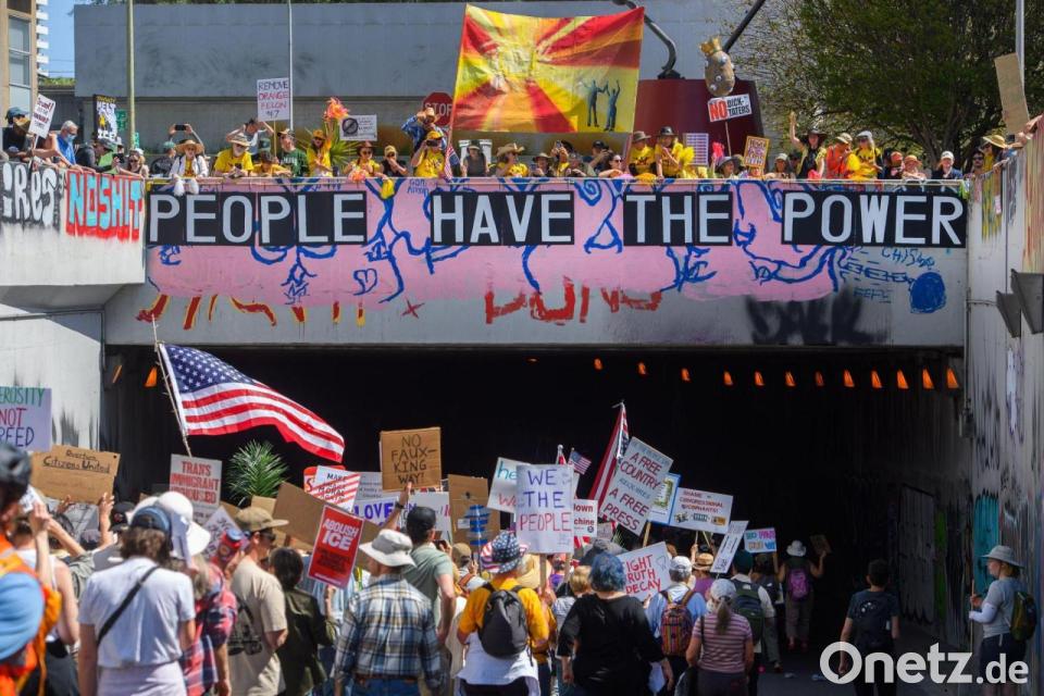 Demonstranten marschieren während des "No Kings"-Protestes in Oakland, Kalifornien.