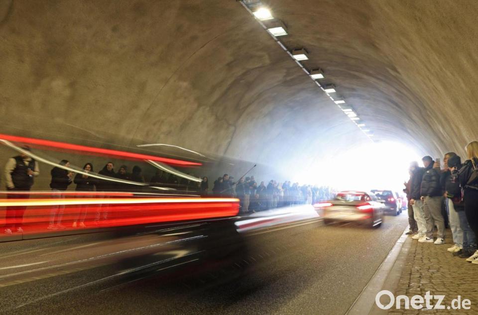 Car-Freitag an der Rappbodetalsperre: Tuning-Autos fahren durch „Soundröhre“-Tunnel