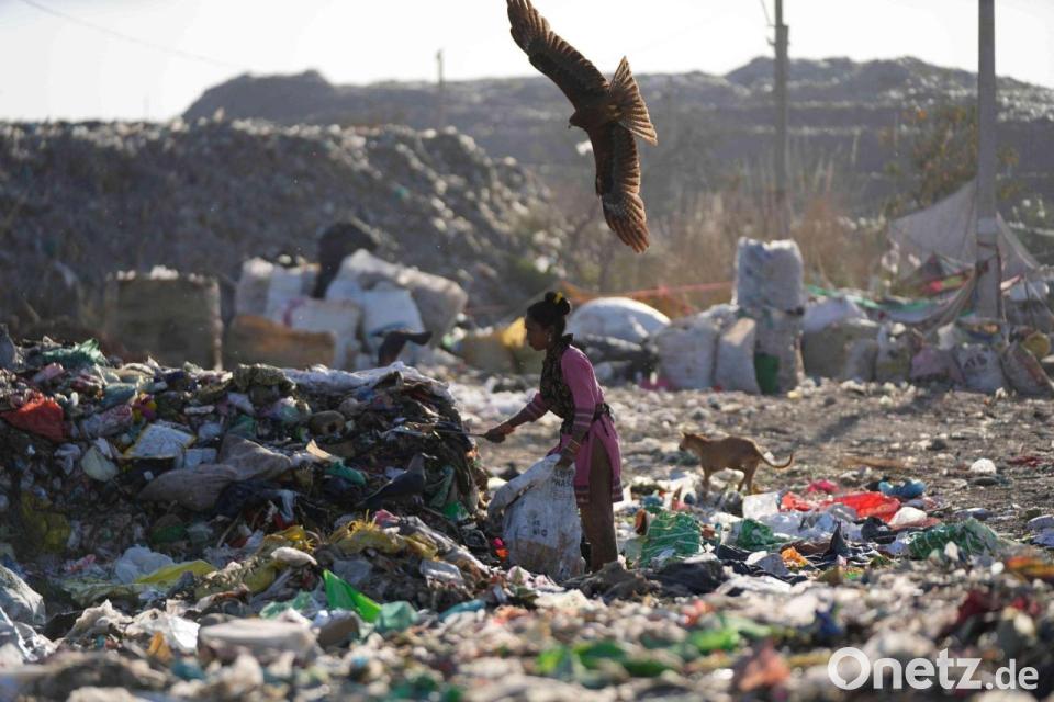 Eine Frau sucht auf einer Mülldeponie im indischen Jammu nach etwas Verwertbarem.