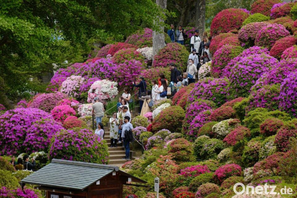 Frühling in Japan: Menschen flanieren in Tokio zwischen blühenden Azaleen.