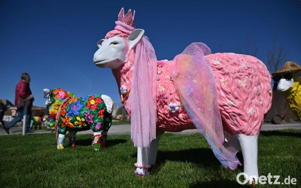 Bunte Tierfiguren stehen auf dem Gelände der Landesgartenschau Leinefelde-Worbis in Thüringen.