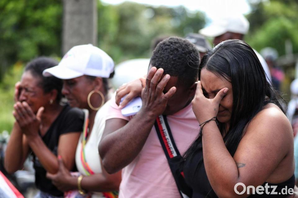 Angehörige eines Opfers weinen während einer Beerdigung in Cajibio, Kolumbien.