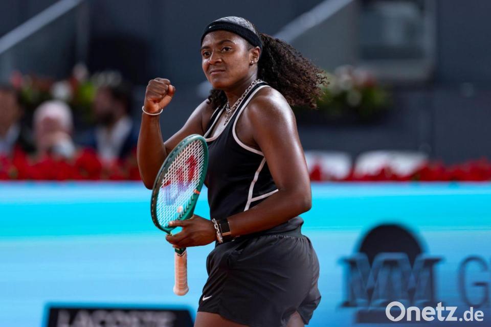 Hailey Baptiste feiert einen Siegpunkt gegen Aryna Sabalenka.