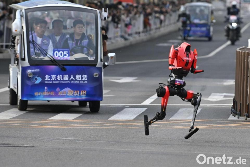 Bei einem Halbmarathon in China sind Roboter der menschlichen Konkurrenz erstmals davongelaufen. In Peking überquerte die ferngesteuerte Version des Humanoids „Blitz“ aus dem Team des Smartphone-Herstellers Honor trotz eines Sturzes kurz vor dem Ende nach 48 Minuten und 19 Sekunden als erster die Ziellinie, wie im Staatsfernsehen zu sehen war.