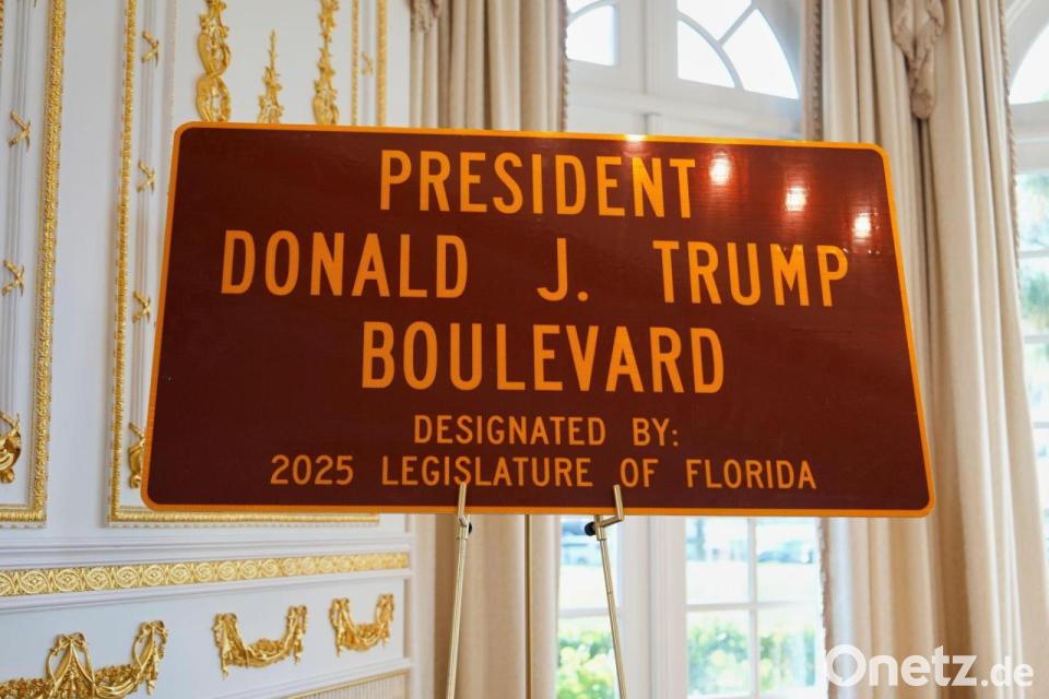 US-Präsident Donald Trump hat nicht nur sein prunkvolles und goldglitzerndes Privatanwesen Mar-a-Lago in Florida - nun ist auch die Straße, die direkt zu dem Privatclub führt, nach ihm benannt worden. In Florida wurde bei einer Zeremonie für Trump die neue Straßen-Plakette präsentiert: „President Donald J. Trump Boulevard“.