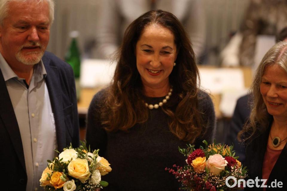 Die Neue an der Spitze wird nach ihrem Amtseid von den knapp 40 Ratsmitgliedern der Kleinstadt mit Applaus bedacht, es gibt ein Blumensträußchen. Dann geht es direkt weiter mit der Tagesordnung in dieser ersten, konstituierenden Sitzung des neu gewählten Stadtrats.