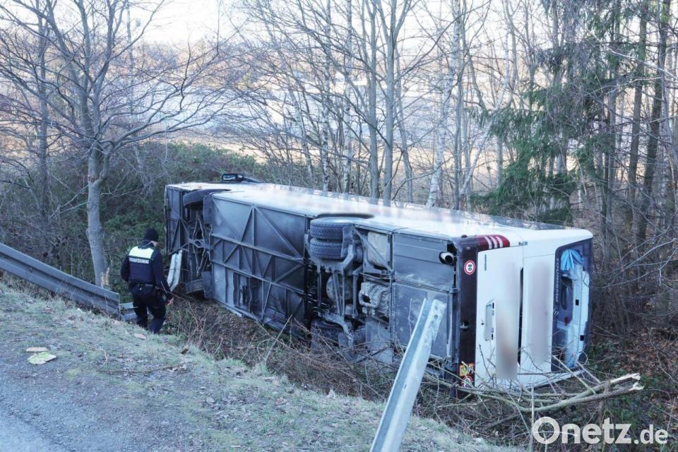 Der Bus mit Schülerinnen und Schülern aus Berlin war auf der A9 in Richtung München unterwegs gewesen. An der Anschlussstelle Schleiz durchbrach er nach Angaben der Sprecherin im Bereich einer Verkehrsinsel eine Leitplanke, fuhr mehrere Meter eine Böschung hinab und kippte um.