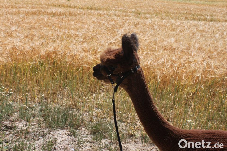 Das Thermometer zeigt 29 Grad. Ich ziehe leicht an der Leine. Wäre ich ein Alpaka, könnte ich mir schöneres vorstellen, als bei dieser Hitze über Feldwege zu laufen. Aber Fehlanzeige. Die Tiere sind absolut anpassungsfähig. „Deshalb ist das Klima für die Tiere hier in der Oberpfalz nahezu perfekt“, klärt Daniel Weinfurter auf, als wir den Schatten des Waldes erreichen. Alpakas könnten sich in Australien oder in Texas genauso wohlfühlen wie bei minus 40 Grad in Kanada.
