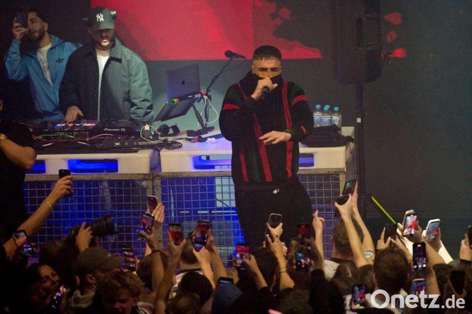 Der Saal im Alando Palais in Osnabrück war in der Nacht nach Beobachtung eines dpa-Reporters gut gefüllt, die Stimmung ausgelassen. Während des Konzerts, das erst nach Mitternacht begann und nur eine halbe Stunde dauerte, schüttelte Haftbefehl vorne an der Bühne Hände. Er gab auch Hits wie „069“ und „Chabos wissen wer der Babo ist“ zum besten.