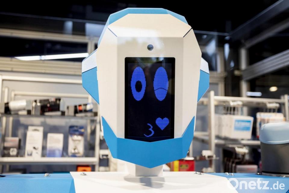 Das "Gesicht" des neuen humanoiden Verkaufsroboters von Conrad Electronic ist bei seiner Pressepräsentation in der Filiale Berlin-Schöneberg zu sehen. Im Gegensatz zu seinen Vorgängern ist dieser Verkaufsroboter der erste, der bei einem Elektronikhändler Waren aus dem aktuellen Sortiment direkt an Kunden verkauft – und das auch außerhalb der regulären Öffnungszeiten.