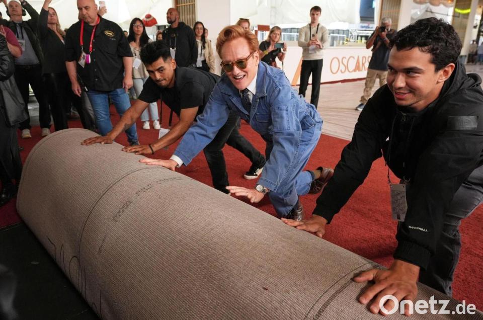 Conan O'Brien, der zum zweiten Mal die Gala moderiert, trug demonstrativ einen robusten Jeans-Overall. Dies könnte auch sein Outfit für die Oscars sein, scherzte der Komiker und posierte im Blitzlichtgewitter auf den schweren Teppich-Rollen.
