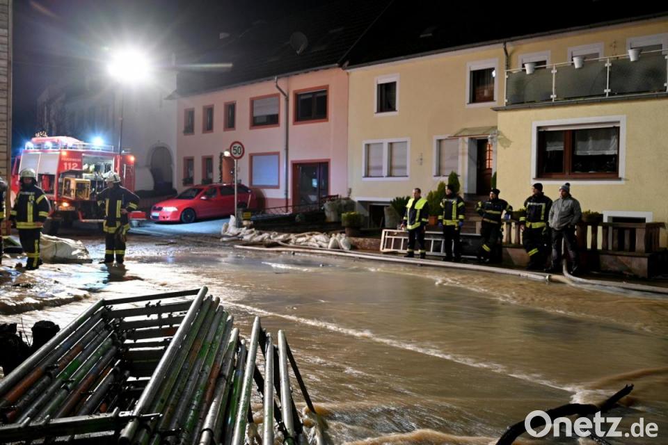 Der Ortskern der Gemeinde Aach bei Trier wurde in der Nacht von einem Bach überschwemmt, wie ein Sprecher der Technischen Einsatzleitung sagte. Genauere Informationen zu Schäden gab es zunächst nicht.