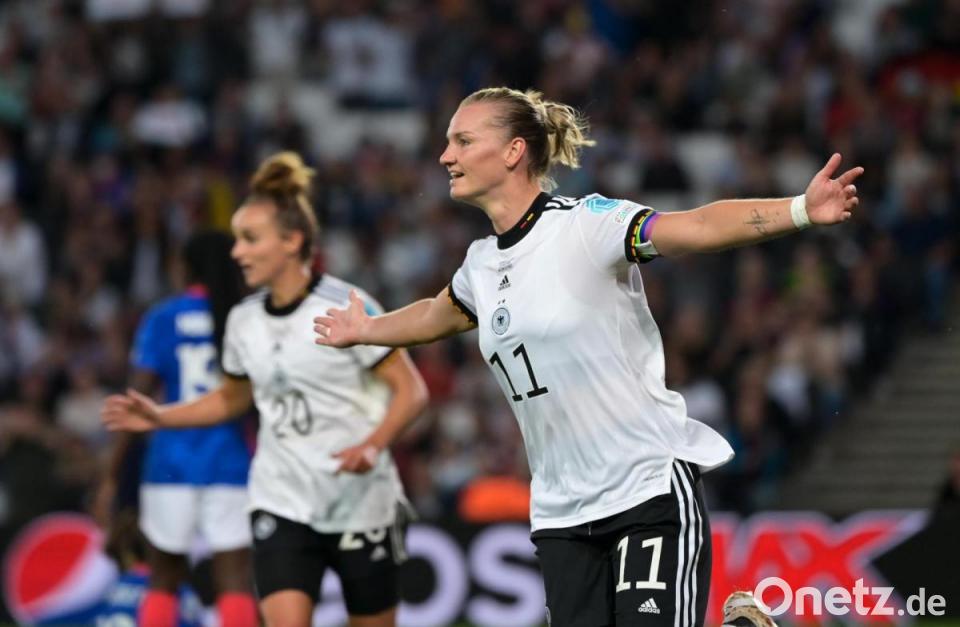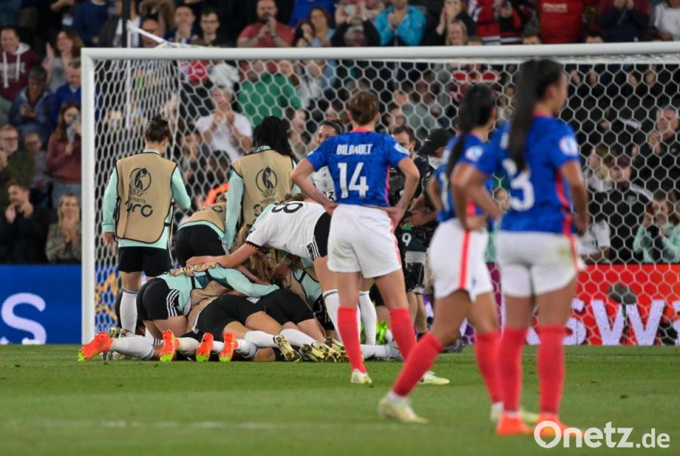Die Nationalspielerinnen stürmten überglücklich auf ihre Torgarantin zu, Bundestrainerin Martina Voss-Tecklenburg verbarg ihr Siegerlachen kurz hinter beiden Händen. Auf nach Wembley - die deutschen Fußballerinnen um Alexandra Popp spielen um den EM-Titel! Die Kapitänin erzielte beim 2:1 (1:1) im Halbfinale gegen Frankreich am Mittwochabend in Milton Keynes ihr fünftes und sechstes Tor im fünften Turnierspiel. Noch auf dem Rasen versammelte Voss-Tecklenburg ihre Finalistinnen zur Einstimmung auf das große Endspiel in Londons legendärem Stadion am Sonntag (18.00 Uhr MESZ/ARD und DAZN) gegen Gastgeber England.