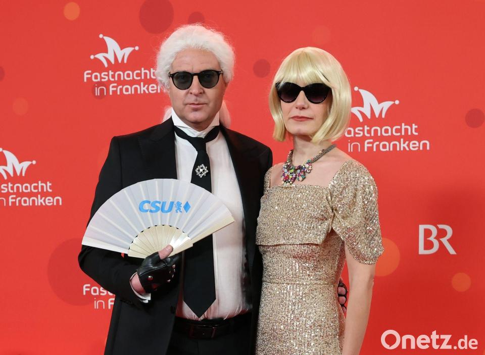 In die Rolle des legendären Modeschöpfers Karl Lagerfeld schlüpfte CSU-Generalsekretär Martin Huber, erkennbar war er einzig am CSU-Schriftzug auf dem Fächer. Seine Frau glänzte als Vogue-Chefin Anna Wintour mit ikonischer Sonnenbrille und strenger Bobfrisur. Wirtschaftsminister Hubert Aiwanger (Freie Wähler) stürzte sich als „Pelztierjäger“ oder „Trapper“ ins Faschingsgetümmel