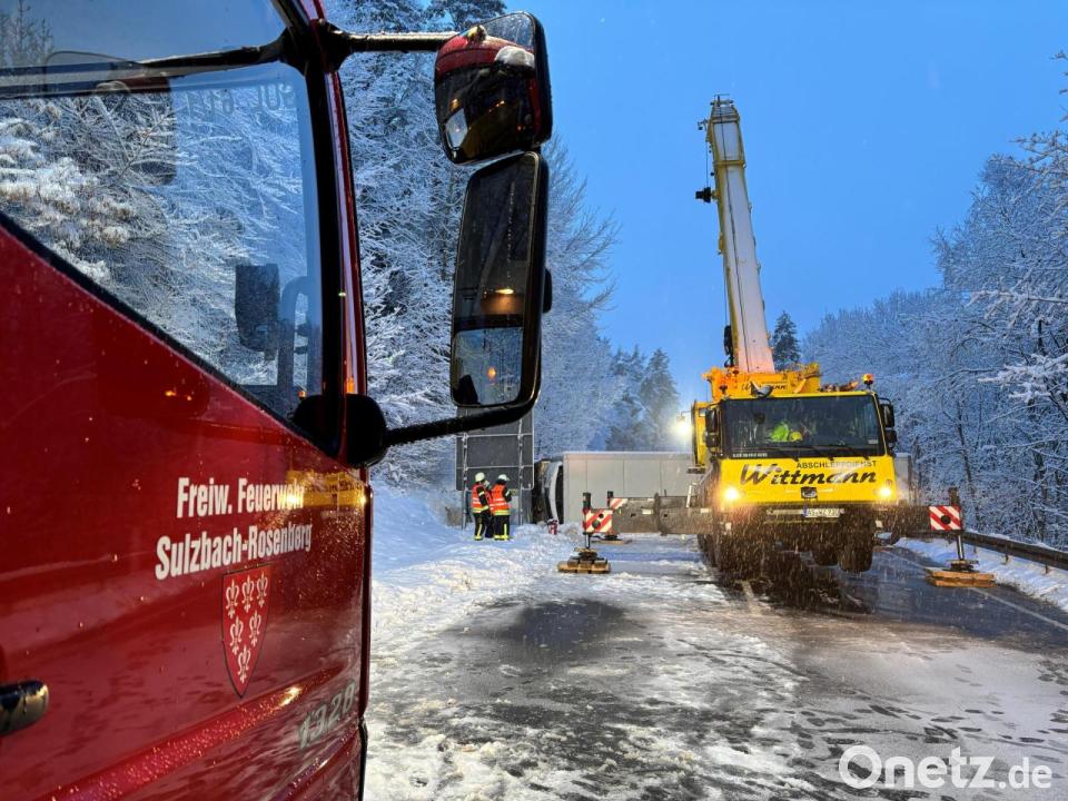 Vereinzelt kam es am Donnerstagmorgen auf glatten Straßen zu Unfällen. Auf der Bundesstraße B 85 bei Edelsfeld im Landkreis Amberg-Sulzbach kippte nach Polizeiangaben ein Lastwagen auf glatter Fahrbahn um. Die Straße musste bis in den Nachmittag hinein gesperrt werden, weil der Lkw mit schwerem Gerät geborgen werden musste. Der Fahrer wurde leicht verletzt.
