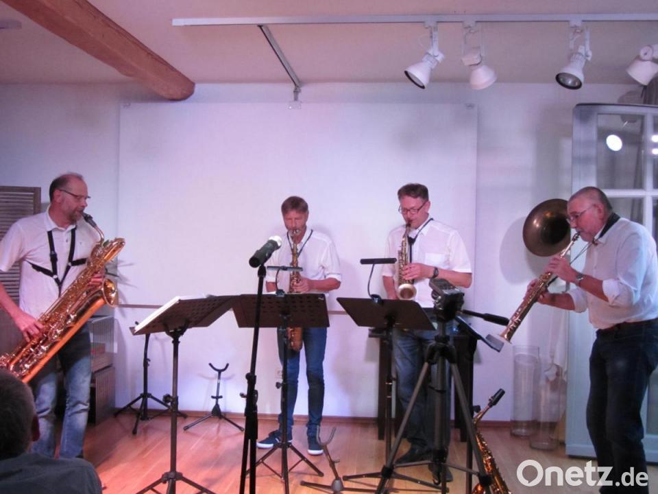 Die wöchentlich angesetzten Proben verlaufen schweißtreibend, plauderte Geiß aus dem Nähkästchen. Die Sommerhitze in der Edel-Scheune war insoweit also schon mal keine große Umstellung für die „Sax-Brothers“, die sich im privaten Kreis eine umfangreiche Playlist mit allem erarbeitet hatten, was innerhalb der Jazz-Standards immer gerne gehört wird und untrennbar mit Komponisten wie George Gershwin, Thelonius Monk oder Sidney Bechet verbunden ist.