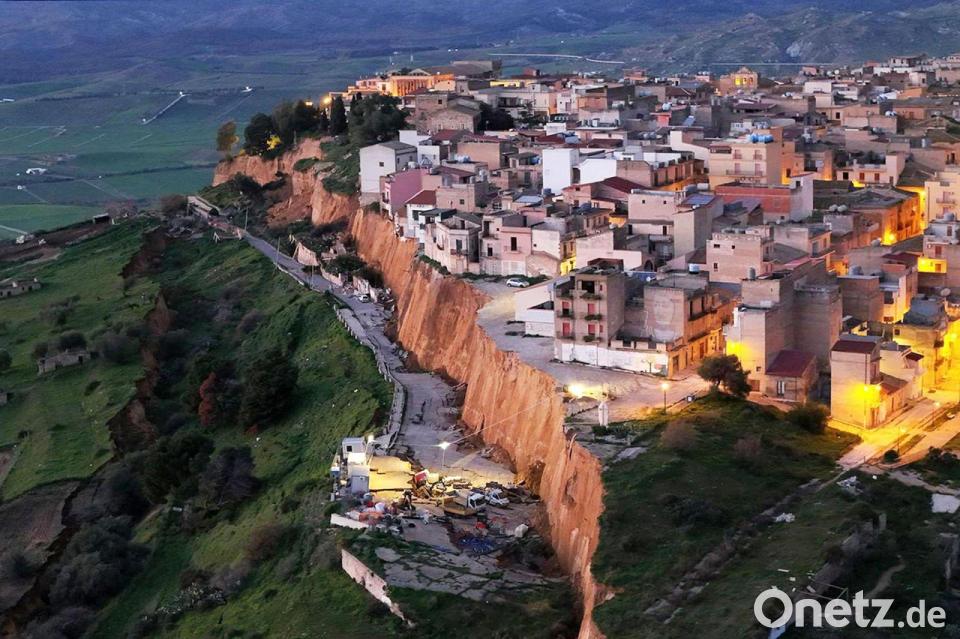 Nach schweren Unwettern auf Sizilien hat sich in einer Stadt ein massiver Erdrutsch gebildet. Seit dem Wochenende sackt der Boden in Teilen des Gebiets von Niscemi im Süden der Mittelmeerinsel ab. Ein Teil der Stadt steht regelrecht am Abgrund und droht abzurutschen. Mehr als 1.500 Menschen mussten nach Angaben der Behörden aus ihren Häusern evakuiert werden.