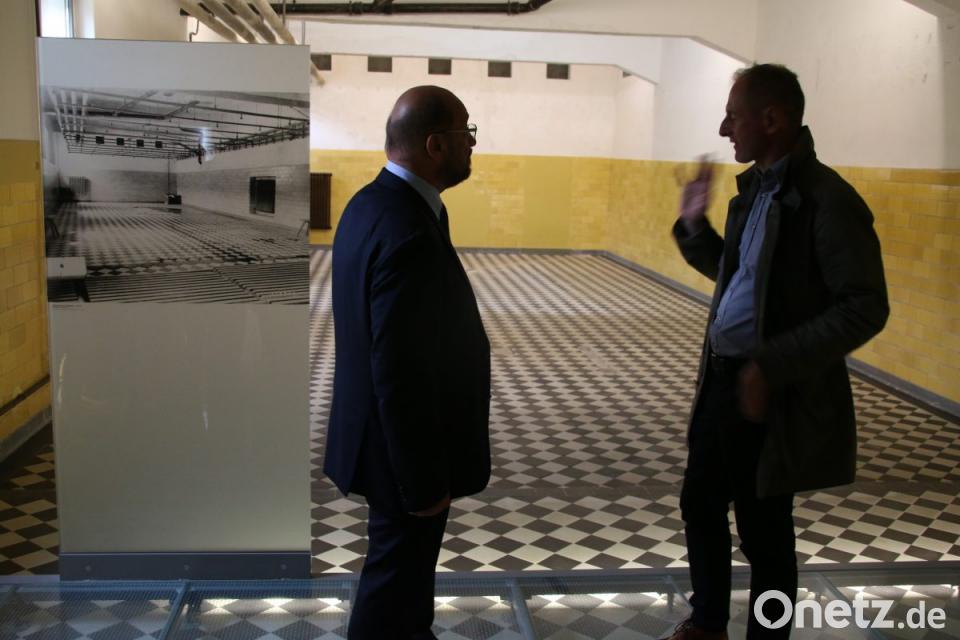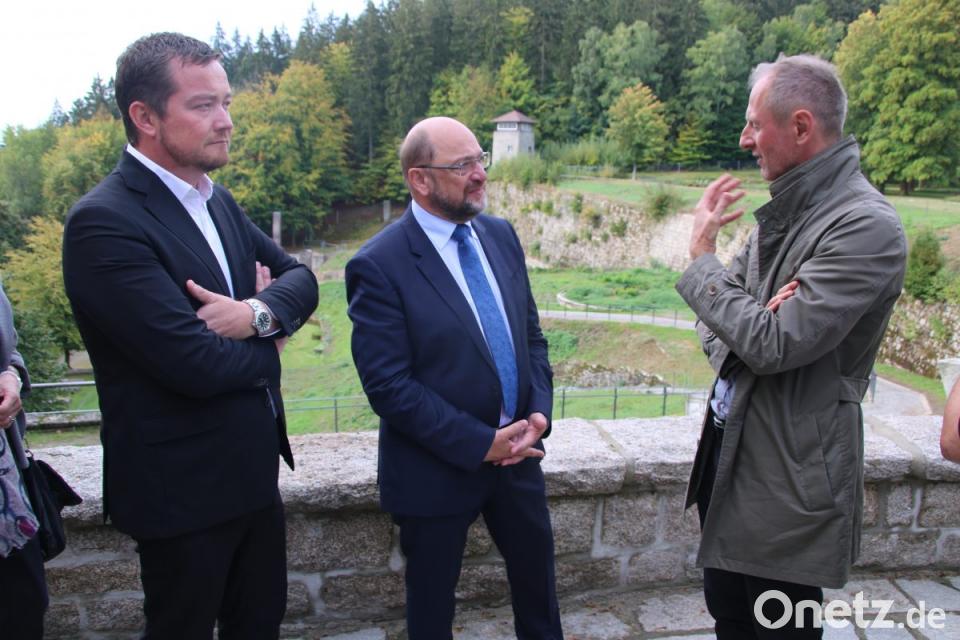 Als der Schulz-Tross im ehemaligen SS-Casino eintrifft, wo junge Menschen mit Behinderung fröhlich den Laden schmeißen, ratscht ein Damenkränzchen aus dem Ort munter an der langen Tafel. "Sie sehen, wir sind offen und von den Einheimischen akzeptiert", freut sich Skriebeleit. Kaum eine Minute vergeht, dass der Gedenken-Modernisierer nicht Gäste aus Buchenwald oder dem Kultusministerium begrüßen muss. Einen Ort der Begegnung weit über die Grenzen der Oberpfalz hinaus hat Skriebeleit mit seinem Team geschaffen. "Eine KZ-Gedenkstätte ist immer ein internationaler Ort", erklärt er. "Ein Ort, an dem sich deutsche und europäische Geschichte in mehreren Lagen wiederfindet."